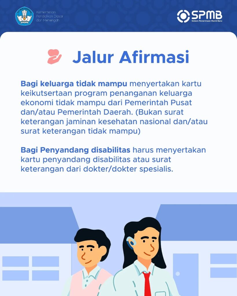 - Penerimaan murid baru tahun ajaran 2025/2026 dilaksanakan sesuai dengan Peraturan Menteri Pendidikan Dasar dan Menengah Nomor 3 Tahun 2025 tentang Sistem Penerimaan Murid Baru (Permendikdasmen tentang SPMB).