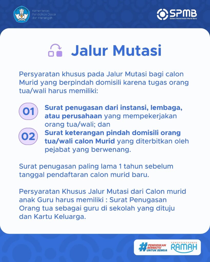 - Menindaklanjuti terbitnya Permendikdasmen tentang SPMB, Direktorat Jenderal Pendidikan Anak Usia Dini, Pendidikan Dasar, dan Pendidikan Menengah telah melakukan sosialisasi kebijakan SPMB pada hari Selasa, tanggal 11 Maret 2025……….. Berita selengkapnya